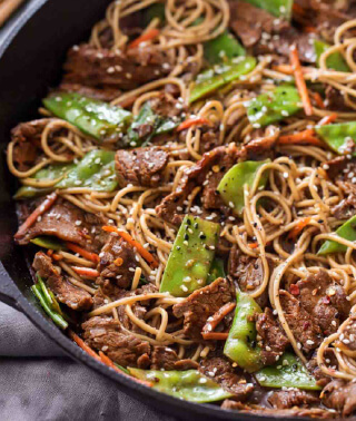 - Whisk together broth, soy sauce, honey/brown sugar, rice vinegar, garlic, sesame oil, fresh ginger, cornstarch, and red pepper flakes. Add steak and sauce to skillet, stirring to combine. Sauce will thicken.
