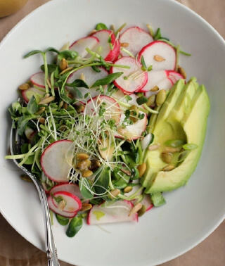 - After you’ve mixed the tuna and seasonings in, add the microgreens, a splash of sesame oil, fresh pepper and serve!